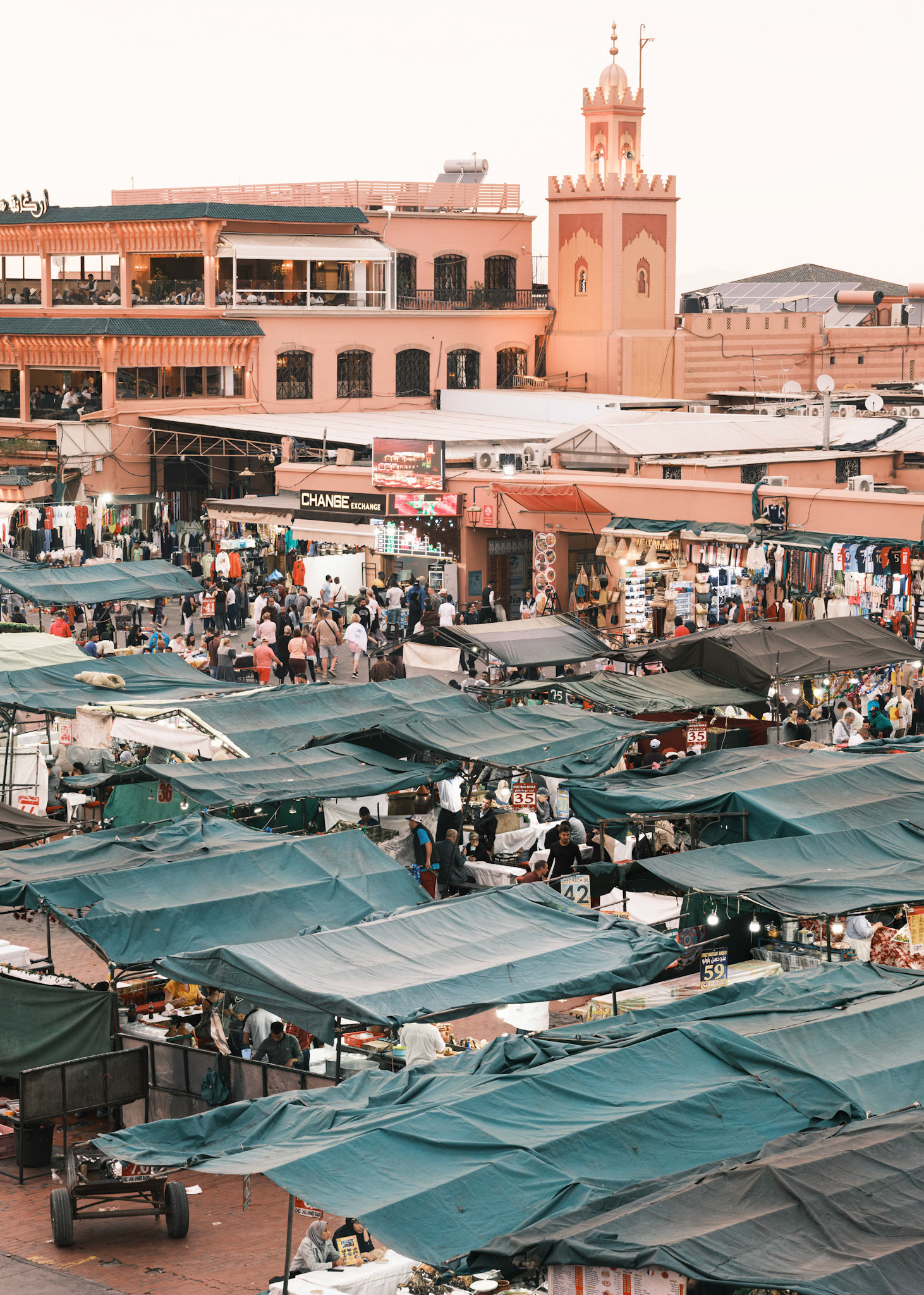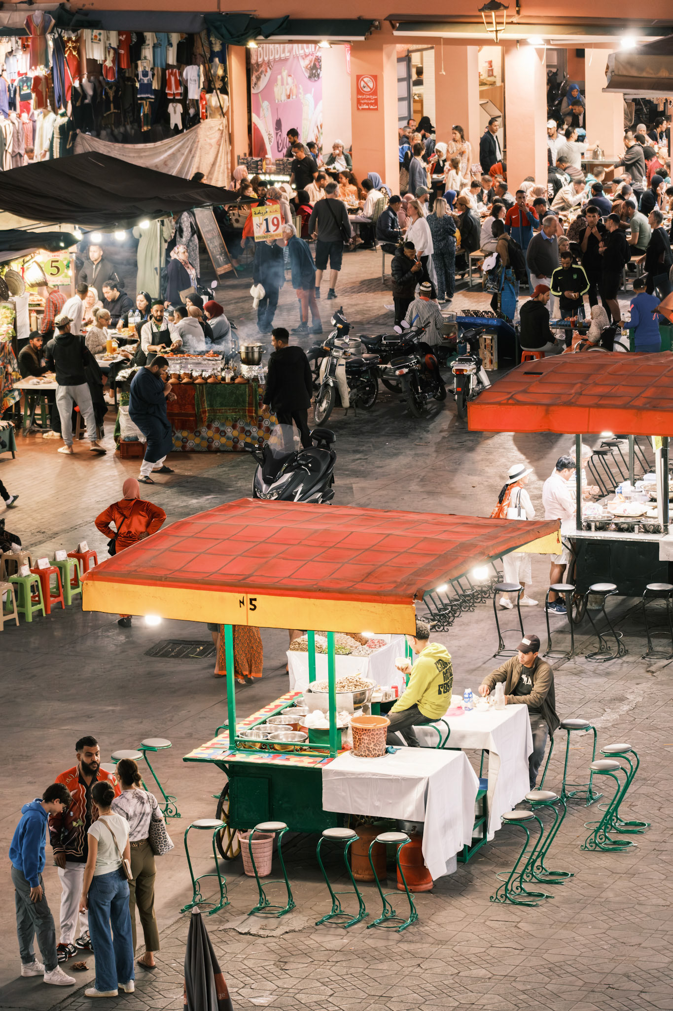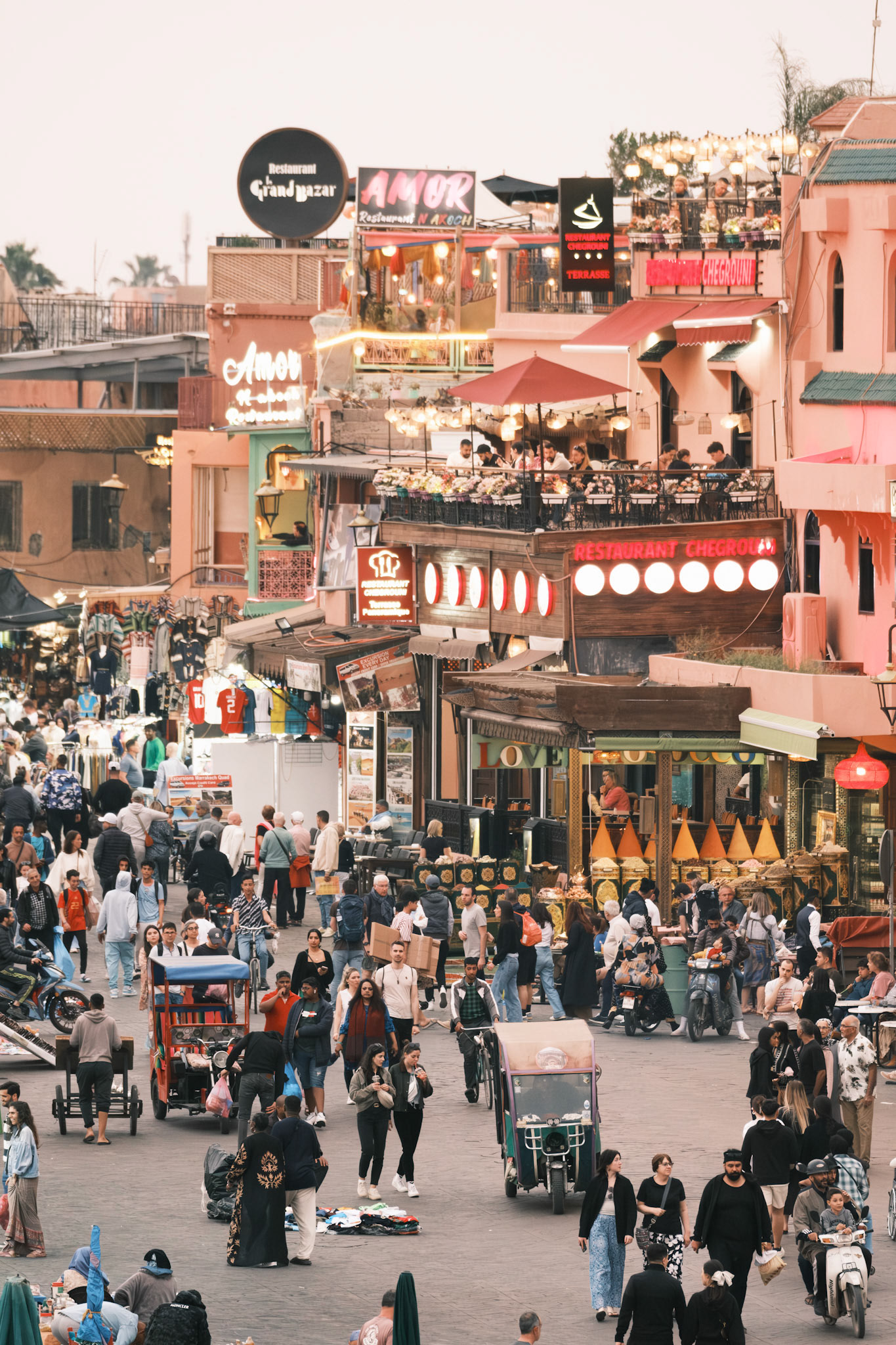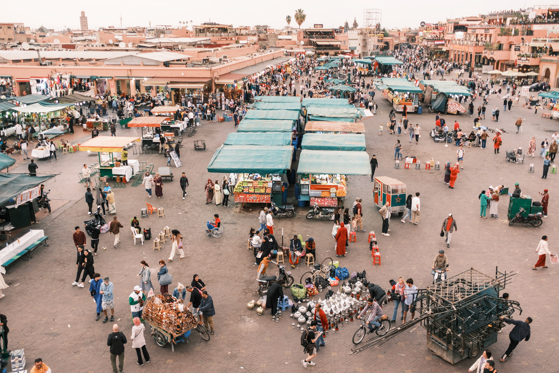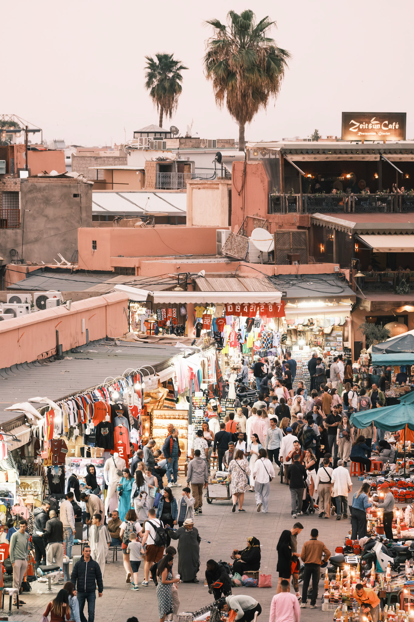 Take the stairs to the cafe's rooftop in the corner of the Jemaa el-Fnaa Square in Marrakech. Buy an overpriced tea as an entry ticket and enjoy one of the best people-watching experiences one ca find.